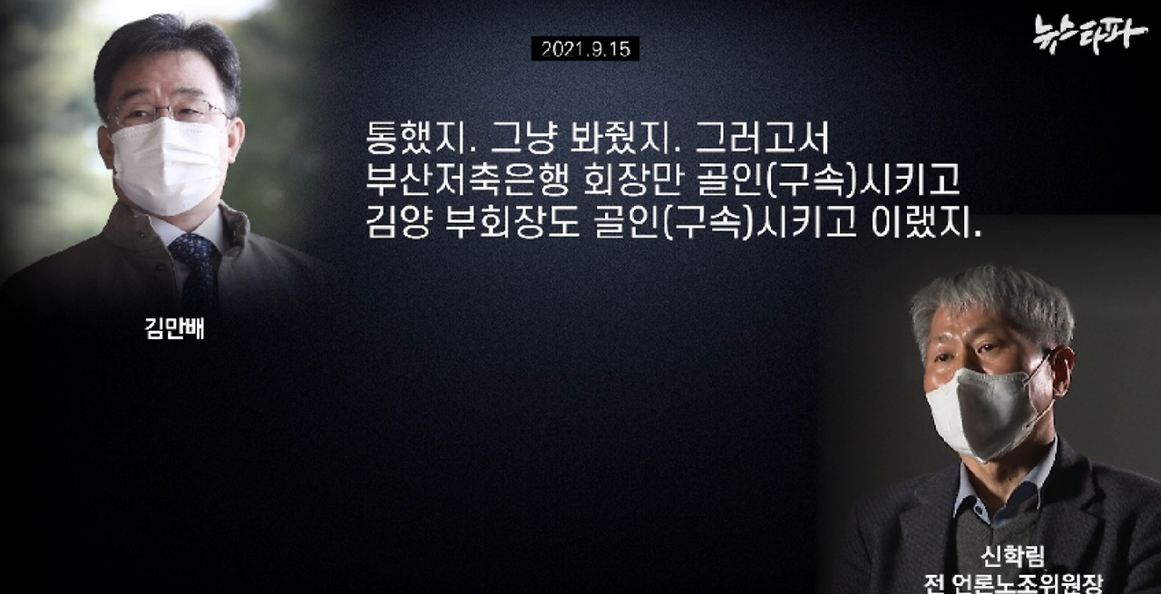 대장동 사건 핵심 인물인 김만배 씨가 검찰 수사 직전인 지난해 9월 지인과 나눈 1시간 12분 분량의 대화 음성파일을 뉴스타파가 입수했다. 이 대화 녹음파일에는 김만배 씨가 대장동 사업을 진