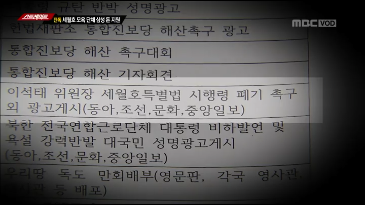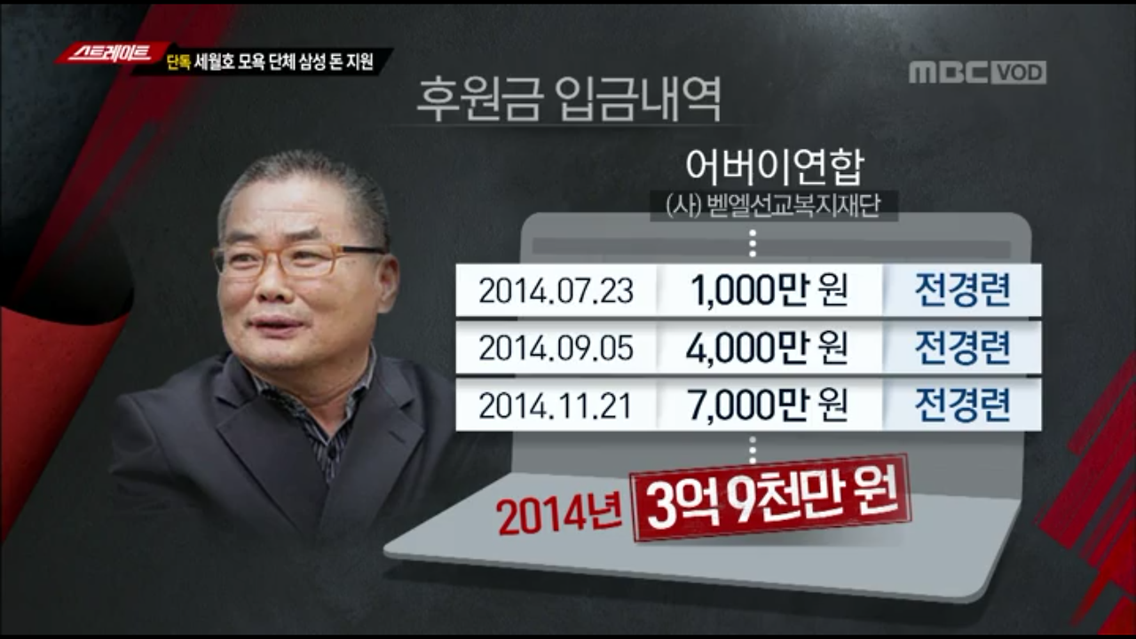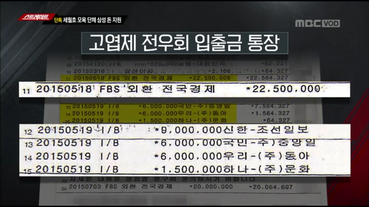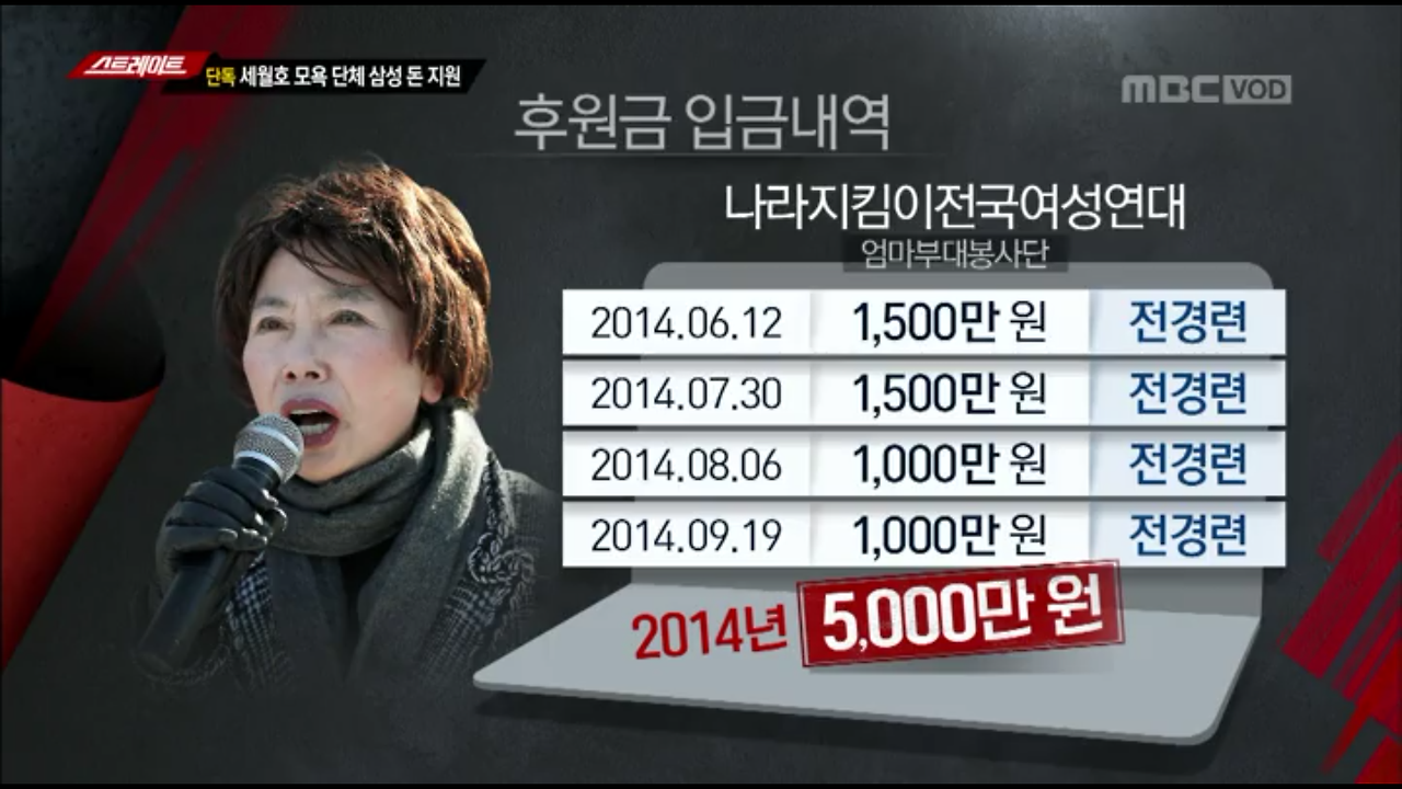 삼성이 전경련을 통해 어버이 연합등 보수단체들에게 우회 입금한 내역 @ MBC 탐사보도