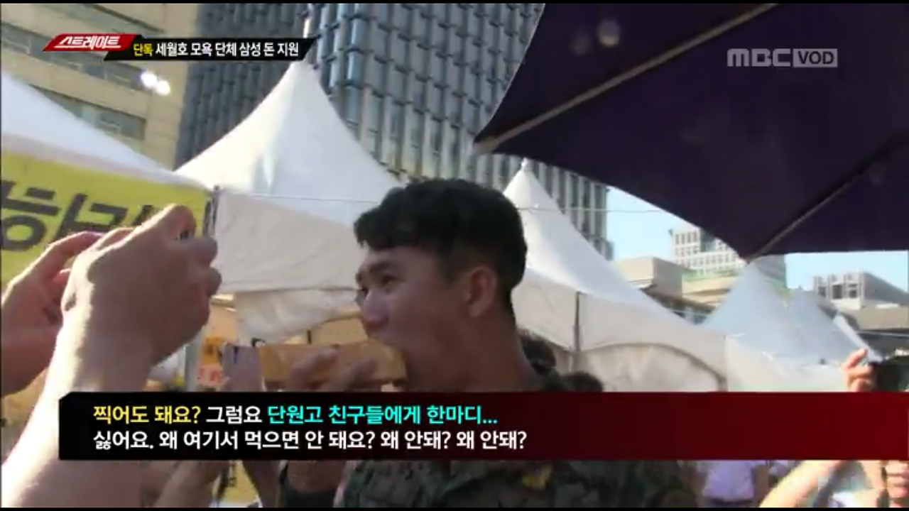 ※ VOD 출처: iMBC -<단독, '폭식 투쟁'의 배후를 밝힌다.; 관련 동영상 (아래 화면의 원본 영상/48분 06초)