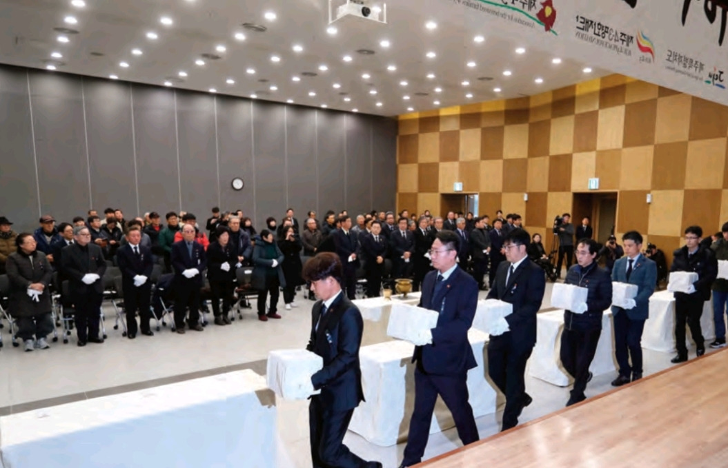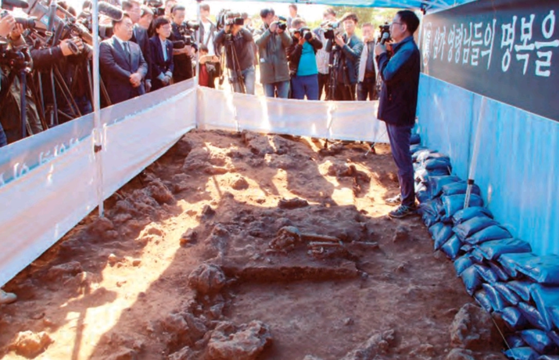 ▲ 2018년 1월 제주공항의 유해 발굴현장과 405구 중 신원이 확인된 133구의 유해가 유족들 품으로 전해지고 있는 '70년만에 가족과의 만남'행사 모습/출처: 뉴시스 고통을 마주하고 치유하기 위한 이런 노력들이 부단히 이어진다면 언젠가는 지난 4·3 사건 70주년 기념사에서 문 대통령이 언급한 '완전한 해결'이 나서 억울하게 죽어간 수많은 원혼과 유가족들이 모든 한과 슬픔을 내려놓고 따뜻하게 안주하는 날이 분명히 올 것으로 믿는다.