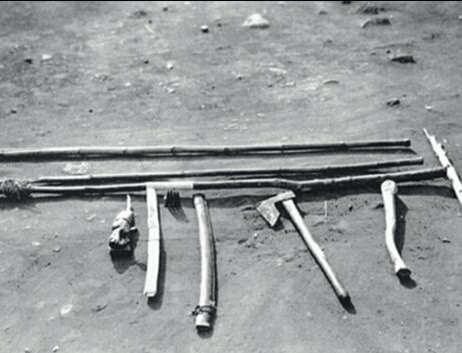 ▲ 체포된 남로당 무장대와 경찰에 압수된 무장대무기, 이 모습은 기록영화 <제주도의 메이데이>에도 나온다. (짚신신은 무장대라니 아이러니 하지않은가?)ⓒ미국립문서기록관리원 서청 단원의 제주 파견은 ‘4.3’ 발발 이후 더욱 늘어난다. 당시 서청 단장을 지냈던 문봉제(文鳳濟)는 조병옥 경무부장의 요청으로 4.3 사건이 나자마자 서청 단원 500명을 경찰전투대 요원으로 보낸 적이 있다고 밝힌 바 있다.