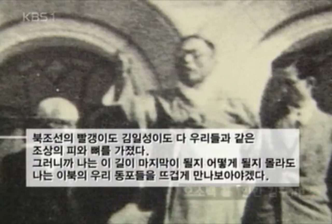* "북조선의 빨갱이도 김일성이도 다 우리와 같은 조상의 피와 뼈를 가졌다. 그러니까 나는 이 길이 마지막이 될지 어떻게 될지 몰라도 나는 이북의 우리 동포들을 뜨겁게 만나보아야겠다."