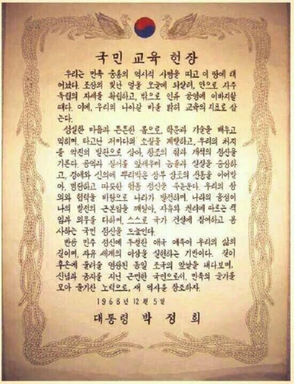 ▲ 1978년 박광순 제작, 김청기 감독의 "똘이 장군-제 3땅굴편"(좌), 1968년 제정ㆍ공포된 국민교육헌장(우) 지금에서야 어디서나 5.18 민주화 항쟁이나 4.3 사건 등에 관해 과거사 진상 규명위가 밝혀낸 보고서를 인터넷으로 편하게 찾아 읽을 수 있지만 그땐 그런 인터넷도, 자료도 거의 없었고 그런 시도조차 할 수 없었다.