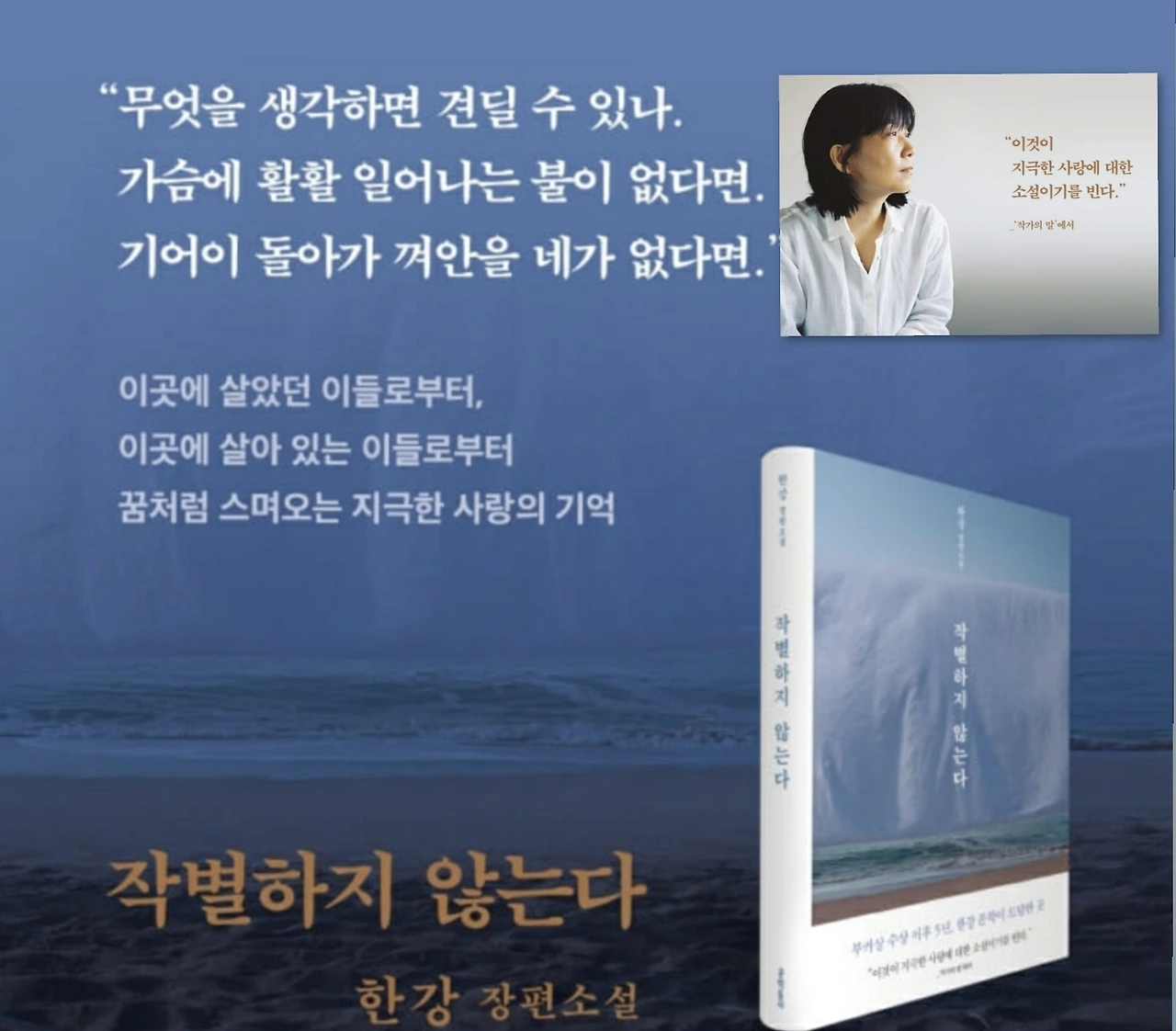 소설 <채식주의자>의 작가 한강의 "작별하지 않는다"란 신작 소설이 출간되었다. 소설은 등장인물들의 의식 속에 켜켜이 눌러놓았던 고통의 흔적들이 제주 4.3 사건을 배경으로 화자를 통해 전개되어 가는 이야기다.