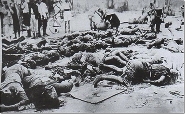 ▲4.3당시 학살당한 민간인 시체들이 방치된 채 이를 지켜보고 있는 민간인들. <출처: 위키피디.>