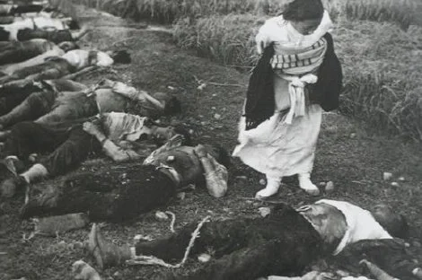 ▲ 4.3 사건으로 희생된 시체 속에서 갓난 아이를 업은 여인이 남편을 찾고 있는 듯 하다. <출처: 구글 관련 자료 검색 >