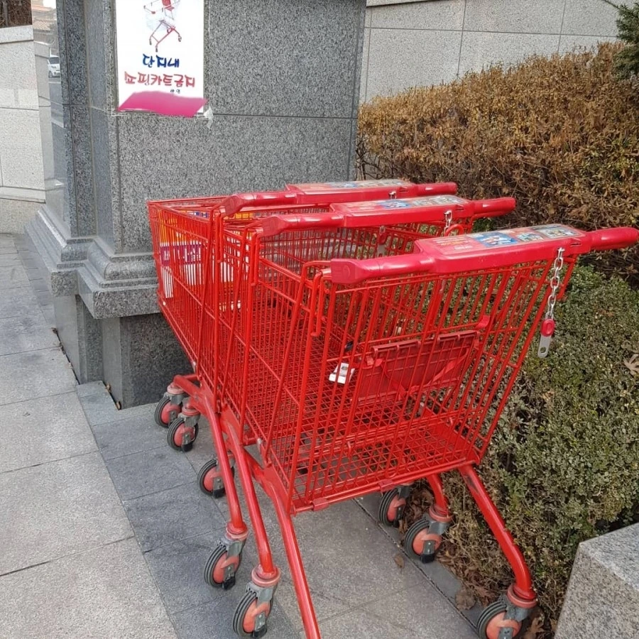 나는 아파트 입구를 지날 때마다 라온이와 로운이에게 말했다. 저 수레들이 원래는 마트에 있어야 하는 건데, 나쁜 사람들이 자기만 편하려고 여기까지 끌고 온 것이라고. 그것은 훔친 거나 다름없다고도 했다. 마트 직원이 고생한 모습에 대한 목격담도 빠짐없이 전했다. 여섯 살, 네 살 형제는 빨간 수레들을 볼 때마다 한마디씩 했다.