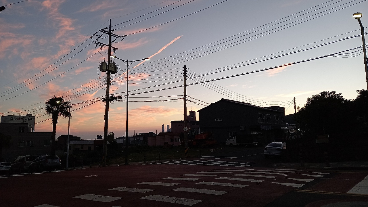동네 앞바다는 검은 모래 해변이라 해가 뜨기 전에는 더욱 검다가 날이 밝아지면서 갈색으로 변한다.