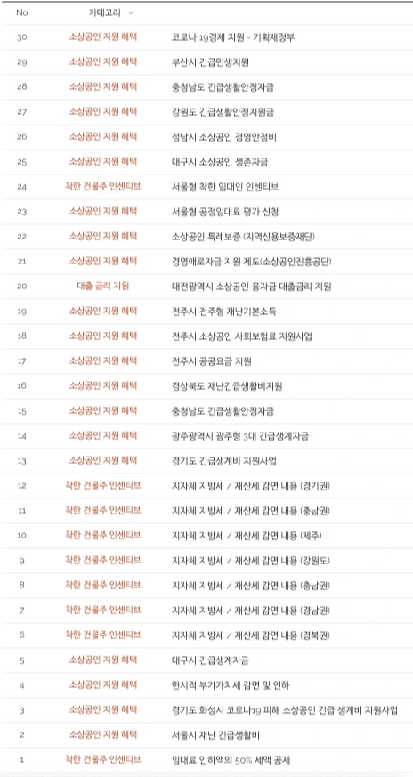 어려움의 무게가 높은 시점에서 임대인들의 선의만을 기다리고 있을 상황은 아닙니다. 실제로 영업에 큰 지장이 있는 다수의 소상공인들을 위해 정부와 지자체가 빠르게 긴급 대안을 마련하고 있습니다. 완벽하게 어려움을 대체할 수 있는 수준은 아니지만 굉장히 꼼꼼하게 소상공인들의 재난 지원과 어려움을 보조하는 신용 프로그램들이 준비되고 있었습니다. 스페이스클라우드 호스트케어 팀에서는 이러한 긴급 지원 정책을 한눈에 볼 수 있도록 최대한 정리해보았습니다.