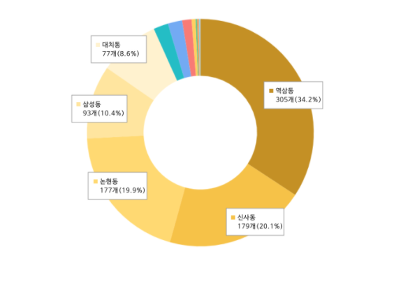 그럼 강남구에 위치한 공간들의 비율을 알아볼까요?