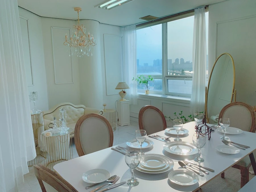 한강뷰를 보며 즐기는 우아한 시간, 공간 실버라스튜디오 1호점에서는 가능합니다. 예쁜 드레스를 제공하는 곳으로 평소에는 브라이덜샤워 장소로 많이 이용되는 곳이에요. 빔프로젝터도 이용이 가능해서 작은 상영회도 할 수 있어요. 주류와 음식물 반입이 가능한 실버라 스튜디오에서 한강뷰를 만끽하며 모임을 즐겨보세요.