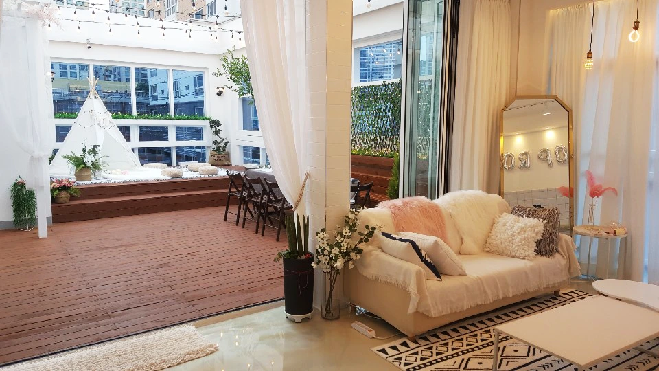 부산 서면 파티룸 루프루프는 화이트 톤의 인테리어,