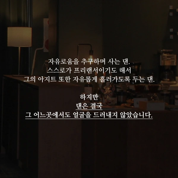 그의 아지트 또한 자유롭게 흘러가도록 두는 댄.