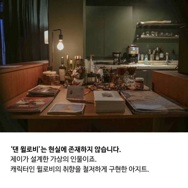 캐릭터인 윌로비의 취향을 철저하게 구현한 아지트.