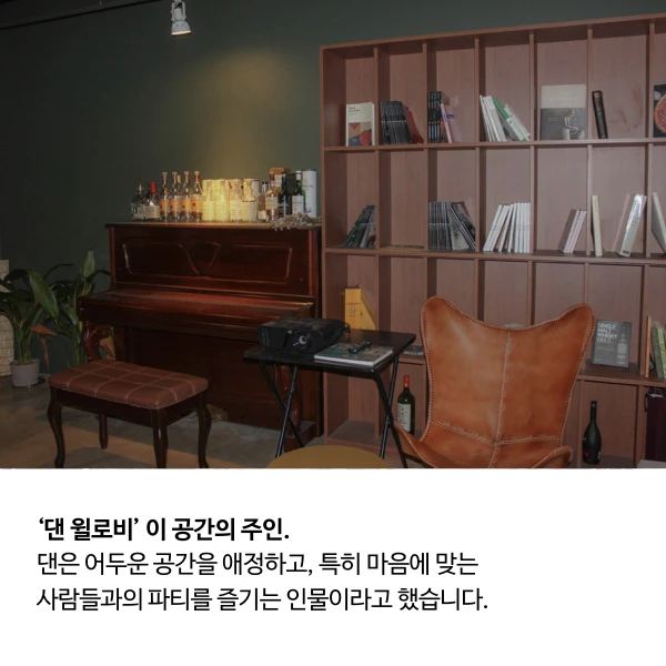댄은 어두운 공간을 애정하고, 특히 마음에 맞는 사람들과의 파티를 즐기는 인물이라고 했습니다.