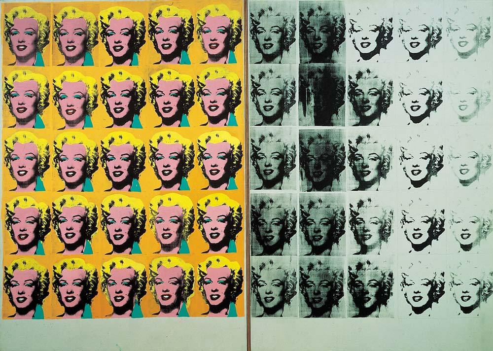현대 미술에서도 아이콘은 사용된다. 팝 아트의 대가인 엔디 워홀이 실크 스크린 방식으로 작업한 마릴린 먼로의 판화 자체가 소비주의를 나타내는 아이콘이다. 엔디 워홀의 작업 방식은 역설적이게도 자신이 비판하는 소비주의의 방식을 따른다. 소비주의를 지속 가능하게 하는 한 축인 대량 생산 방식을 워홀은 이용한다. 그리고 이러한 작업 방식 자체가 소비주의를 비판하는 워홀의 수단이 된다. 자연스러운 결과로 여배우인 먼로가 상품화되고 있는 현실에 대한 워홀만의 비판적인 코멘트 방식 또한 대량생산을 가능하게 만드는 판화 방식이었다. 소비주의와 여배우의 상품화 (commodification)를 가장 잘 상징적으로 표현해주고 있는 작품이 엔디 워홀의 바로 이 작품이다.