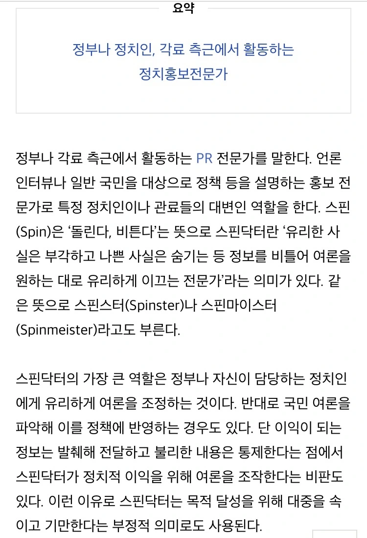 스핀 닥터의 사전적 정의와 직무 기술(job description)