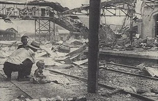 이 사진은 1937년 8월 28일 일본이 상하이의 남부 기차역을 공습한 후 혼자 울고 있는 아이를 중국의 한 사진 기자인 H. S. Wong이 찍어 전 세계에 일본의 만행을 알린 유명한 사진이다. 일명 “피의 토요일(bloody saturday)”이다. 전 세계인의 분노를 끌어낸 역사적인 사진이다. 미국 내 전쟁 개입 반대 여론을 전쟁 개입으로 틀게 하기도 했다. 이 사진으로 인해 일본은 “아기 살인자(baby killers)”의 이미지로 미국인과 유럽인들에게 각인되었다. 이 사진이 미국에서 공개되고 한 달 여만에 전 세계적으로 1억 3천만 명이상이 이 사진을 보고 일본의 중국 민간인 대상의 만행에 경악하고 분노했다. 하지만 같은 해 12월에 다른 사진이 공개된다.