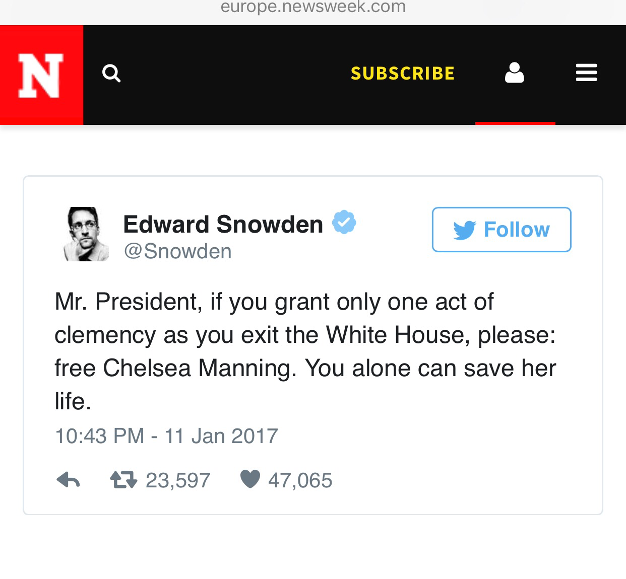 이 조치도 오바마가 안 했다면 그의 수많은 중동지역 민간인 살상에 이어 또 한 번의 비열한 행동으로 지옥의 최악의 감방을 예약할 수 있었는데요. 다행이라는 생각이 듭니다. 첼시 매닝이 유출한 군 기밀문서와 동영상 중에 2007년에 아파치 헬기에서 바그다드에서 민간인을 마치 오락게임하듯이 죽인 동영상도 포함되어 있었는데요. 이런 군 기밀 유출이 미국이나 미군 둘다에 어떤 위협도 없었다고 하네요. The manning leak air strike in Bagdad로 유튜브에 검색하시면 이 동영상을 쉽게 보실 수 있어요. 브래들리, 아니 첼시 매닝의 진실을 폭로한 행위는 35년형이 아닌 훈장을 줘야 하는 상황인데 이런 현실은 미국 정부의 위선을 적나라하게 보여준다고 할 수 있겠네요. 진실을 위해 목숨 걸고 애쓰는 줄리안 어산지 (2012년부터 영국 소재 에콰도르 대사관에서 망명 중), 에드워드 스노든 (러시아에 망명 중), 그리고 첼시 매닝 (군 감옥에서 7년째 복역 중)의 고통과 아픔에 많은 공감과 응원이 필요해 보입니다!!;;