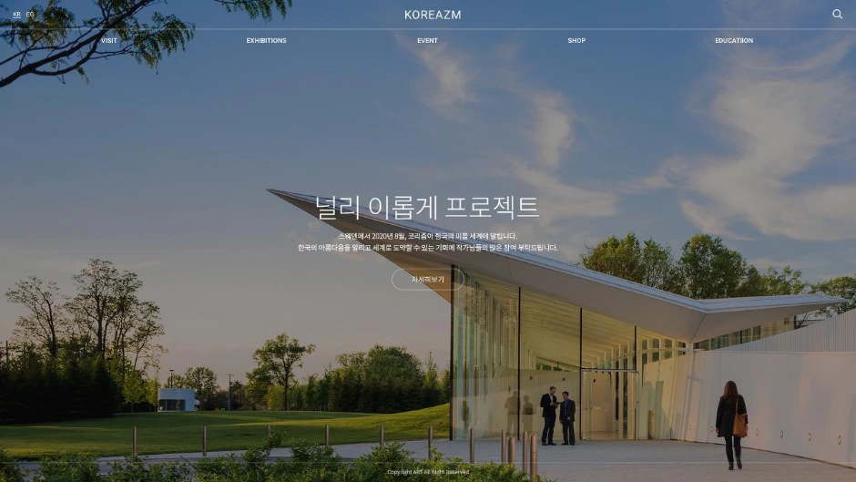 이해를 돕기 위해 반영한 서체는 노토산스 'NotoSans CJK KR'입니다. Google이 Adobe와 공동 개발한 타입으로 한국어, 일본어, 중국어(번체, 간체)를 수용합니다. 국문 폰트에서 한국 전통의 느낌은 명조 계열이 적합합니다. 하지만 설정한 박물관은 전통을 현대적으로 해석한 작품을 취급하는 곳입니다. 그 취지를 반영하기 위해 고딕 계열로 사용했습니다. 얇은 굵기를 사용해 깨끗하고 섬세한 한국적 미를 느낄 수 있습니다.