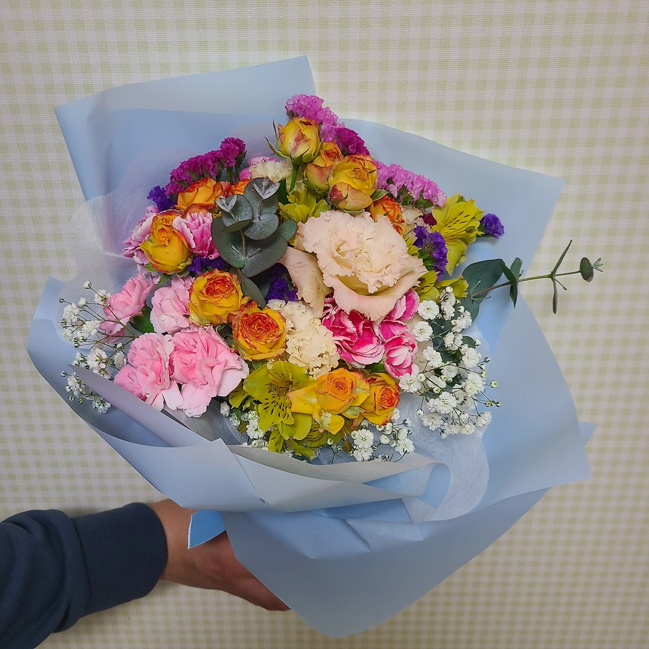 그는 꽃다발을 선물로 사다 줬다ㅎㅎ
