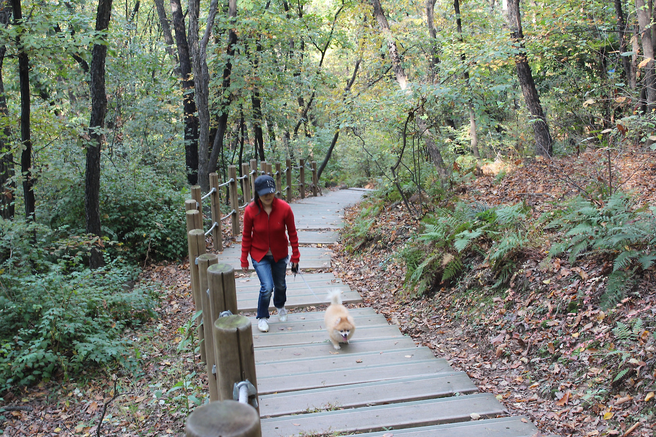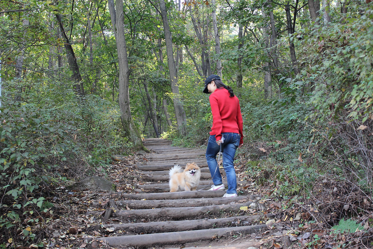 그런데그때 개털이가 아주 이상한 행동을 하는 것이 보였다. 내가 맨 앞에 서서 가고 아내와 아이들이 뒤를 따라 올라오는데 개털이는 나와 맨 뒤의 아들 녀석 사이를 수시로 왔다 갔다 하고 있는 것이었다. 혹시나 해서 내가 빨리 걸어 거리가 멀어지면 개털이도 그만큼 왕복했고, 거리가 가까워지면 딱 그만큼만 왕복했다. 그러고 보니 이 녀석이 양 몰이하듯이 우리를 건사하고 있는 것이었다.