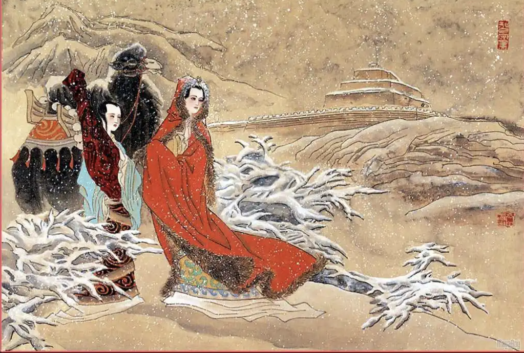 그림설명: 왕소군이 중국을 떠나 낙타를 타고 흉노로 시집가는 모습. 아무도 배웅을 안 한다.