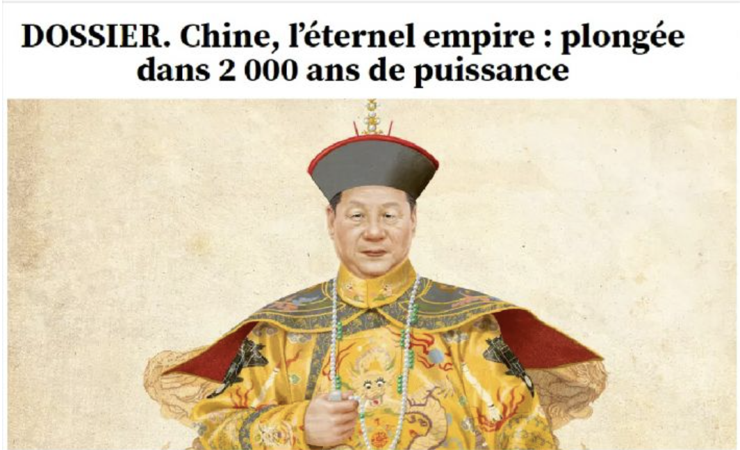 습근평에 중국 황제의 옷을 입혀 놓은 프랑스 잡지사진. 불어로 쓴 부분의 해석은 생략한다.