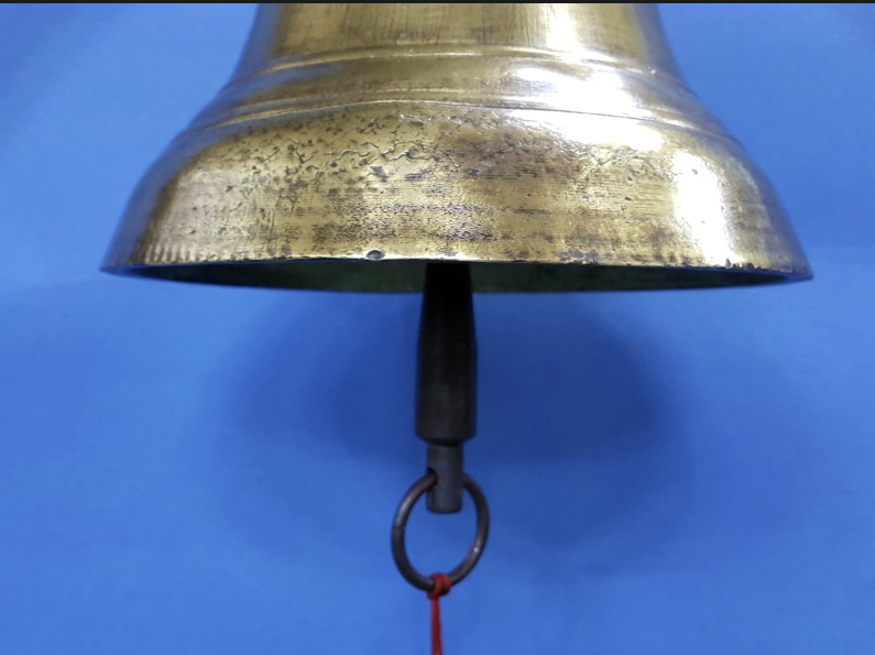 종이다. 사진에 보이는 종 불알에 끈을 달아 당기면 종 불알이 좌우로 오가며 종의 안쪽을 타격해 소리 낸다. (사진출처: https://url.kr/ 검색일. 22.11.10)