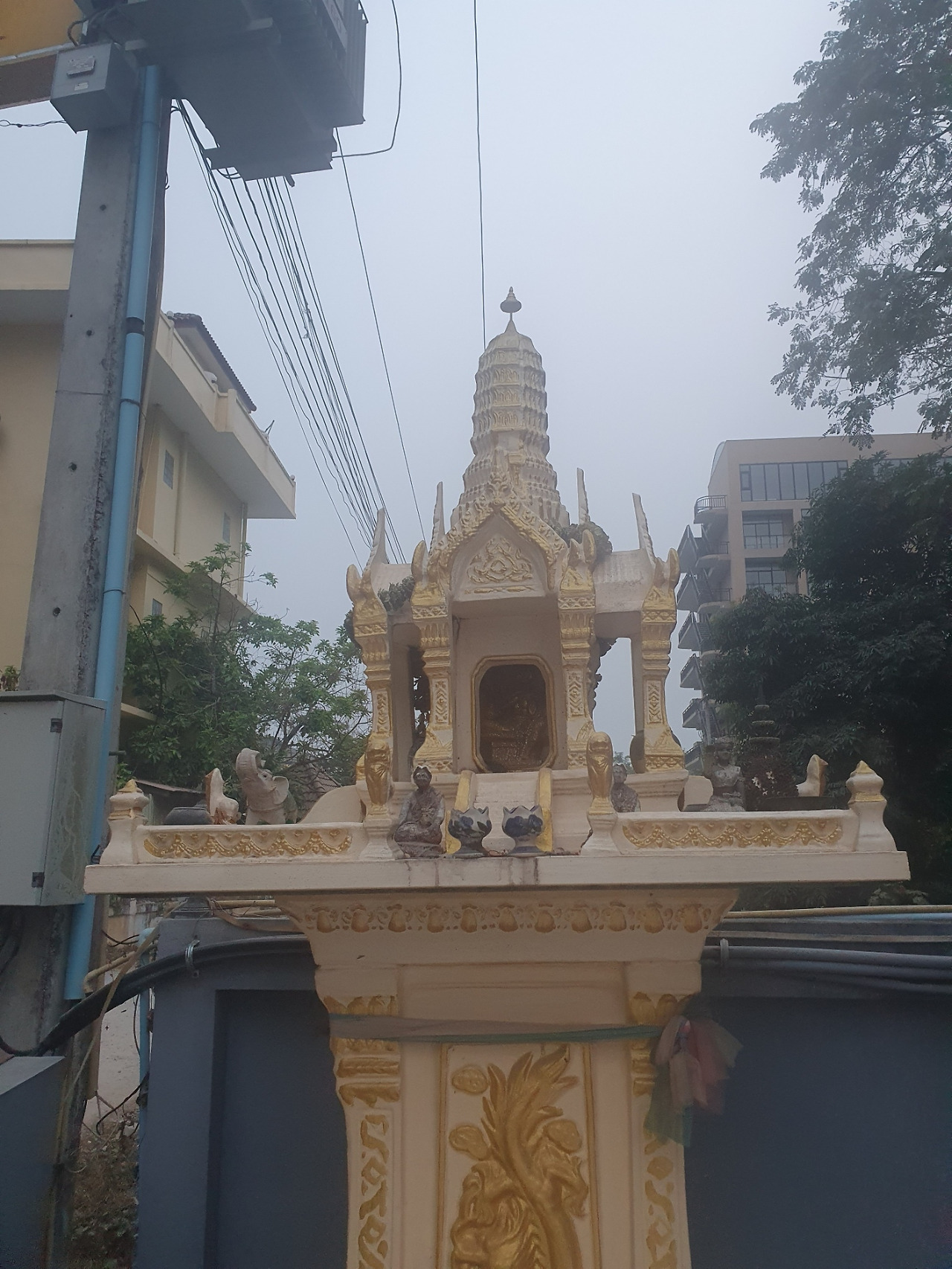 불단은 화려해 보이지만 그 위에 놓은 작은 정성들은 소박해 보인다. 건기 막바지의 쏭강은 야윌 대로 야위었다. 그래서 물소리는 더 높고 여울은 늘어났다. 얕은 물길에 이끼가 돌들을 덮고 있다.