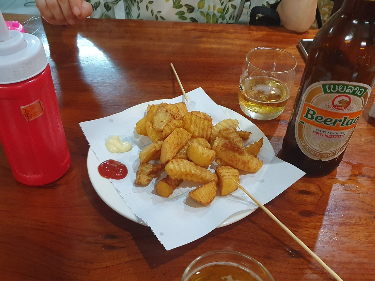 집에서 이렇게 감자튀김을 해 먹으려면 그 품이 만만치 않다. 하지만 이렇게 제대로 된 감자튀김을 파는 집을 나는 알지 못한다. 그러니 오랫동안 이런 맛을 놓친 것이다. 금세 라오 비어 한 병을 비우고 또 한 병을 주문했다.