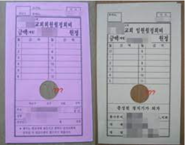 교회 헌금 봉투이다. 투명한 구멍을 뚫어 놓아 얼마인지 볼 수 있게 했다. 왤까? (출처, https://zrr.kr/UIpz.검색일, 2023.5.17.)
