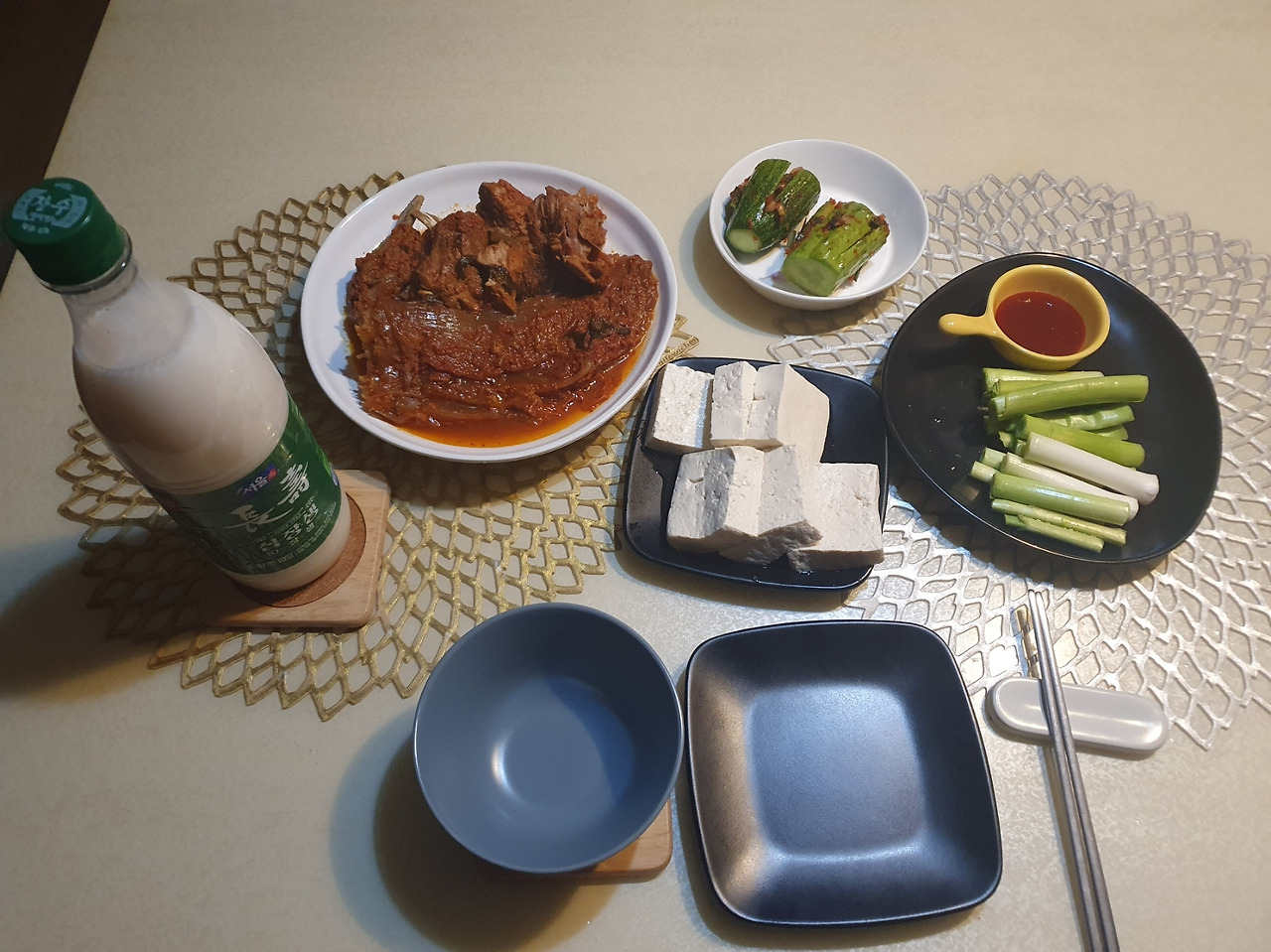 나는 마늘을 좋아하지만, 마늘은 기름과 고기를 좋아한다. 하지만 풋마늘은 ‘회(膾)’로 먹어야 하는 법! 기름을 쓸 수는 없는 노릇이라 먹다 남은 김치찜을 데피고, 두부를 삶았다. 그리고 금 년 첫 풋마늘 정찬(生吃嫩蒜)을 시작했다. 여리고 연한 것이, 보통 야무지지 않다. 진짜 풋마늘은 이만큼 '아려야' 제대로다.