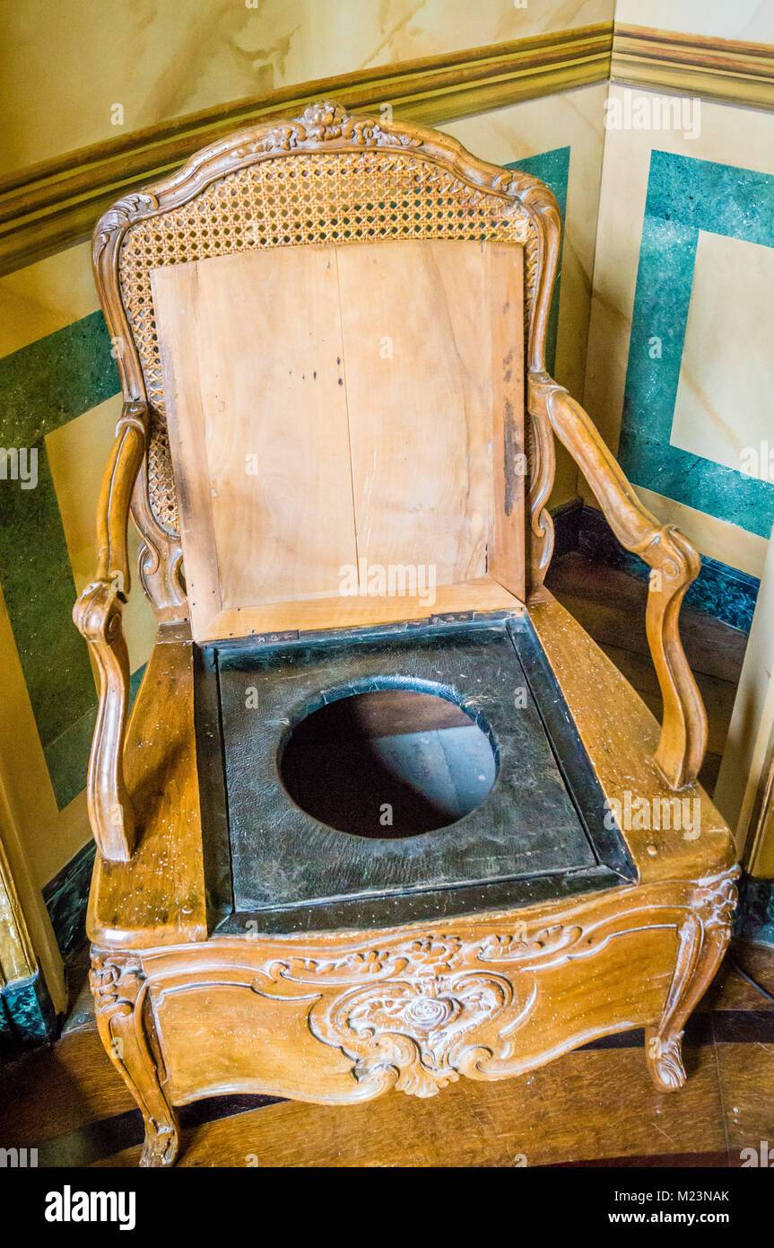 프랑스의 우아한 귀족 나부랭이들은 셰즈 페르시(chaise percée)라는 것을 사용했다. 조남국 선생이 좋아하는 직역을 하면, ‘구멍 뚫린 의자'라는 뜻이다. 루이 14세나, 나폴레옹, 또는 마리앙뜨와네뜨까지 여기 앉아 용을 썼다. 그러니 구태여 따로 화장실 만들 필요를 느끼지 못한 것이다. 지들은 하나도 급한 일 없으니까!