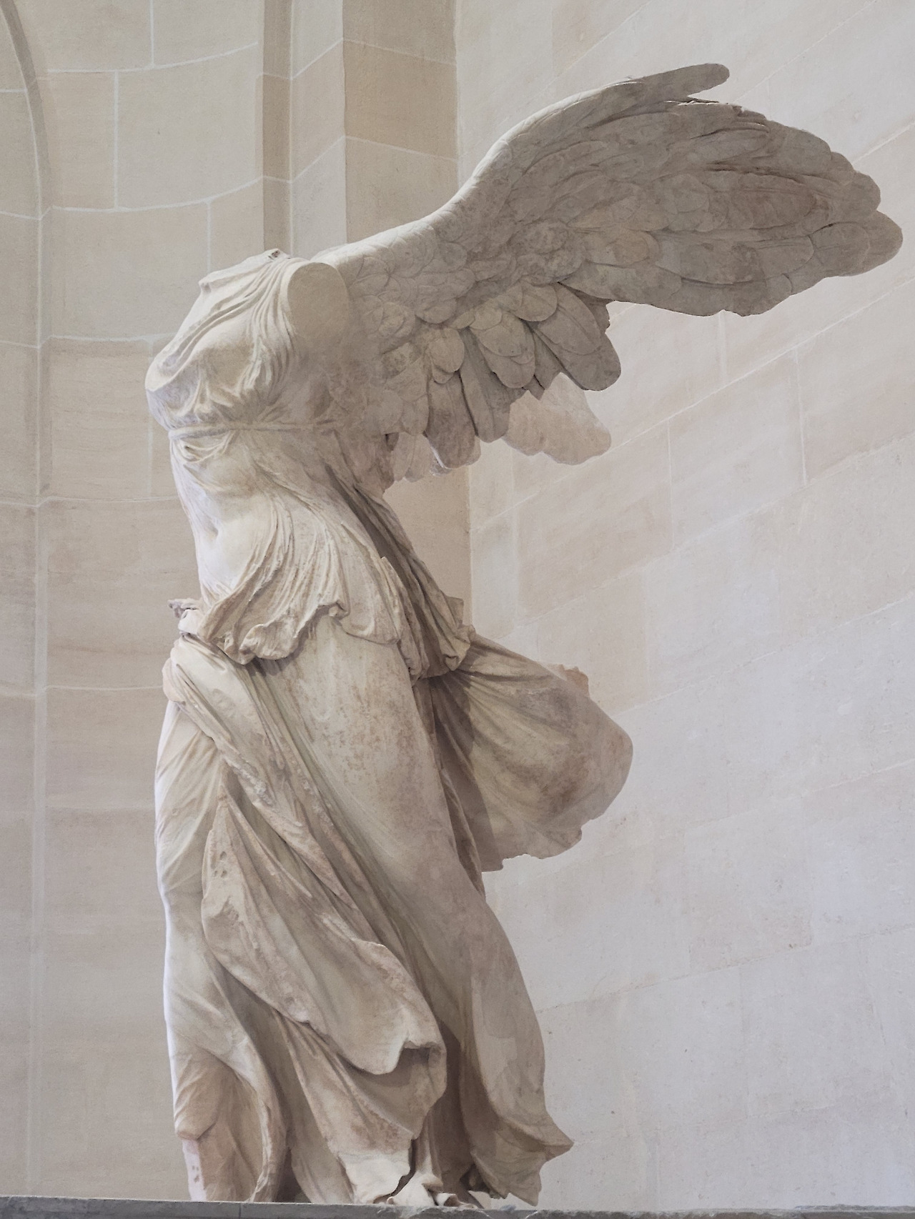 승리의 여신이다. 이 얼굴 없는 여자(그래서 더 좋다)를 조각으로 만든 것이 그 유명한 ‘《사모트라케의 니케(Winged Victory of Samothrace)》다. 날개를 활짝 펴고 서 있는 모습이 아주 만만치 않아 보였다. 이 여자 날개를 형상화한 것이 나이키 로고'스우시(Swoosh)’인데, 내가 승리의 여신이라면 내 날개 가지고 신발 상표로 쓰는 거(그것도 한 푼도 안 주고) 별로 유쾌할 것 같지 않다.