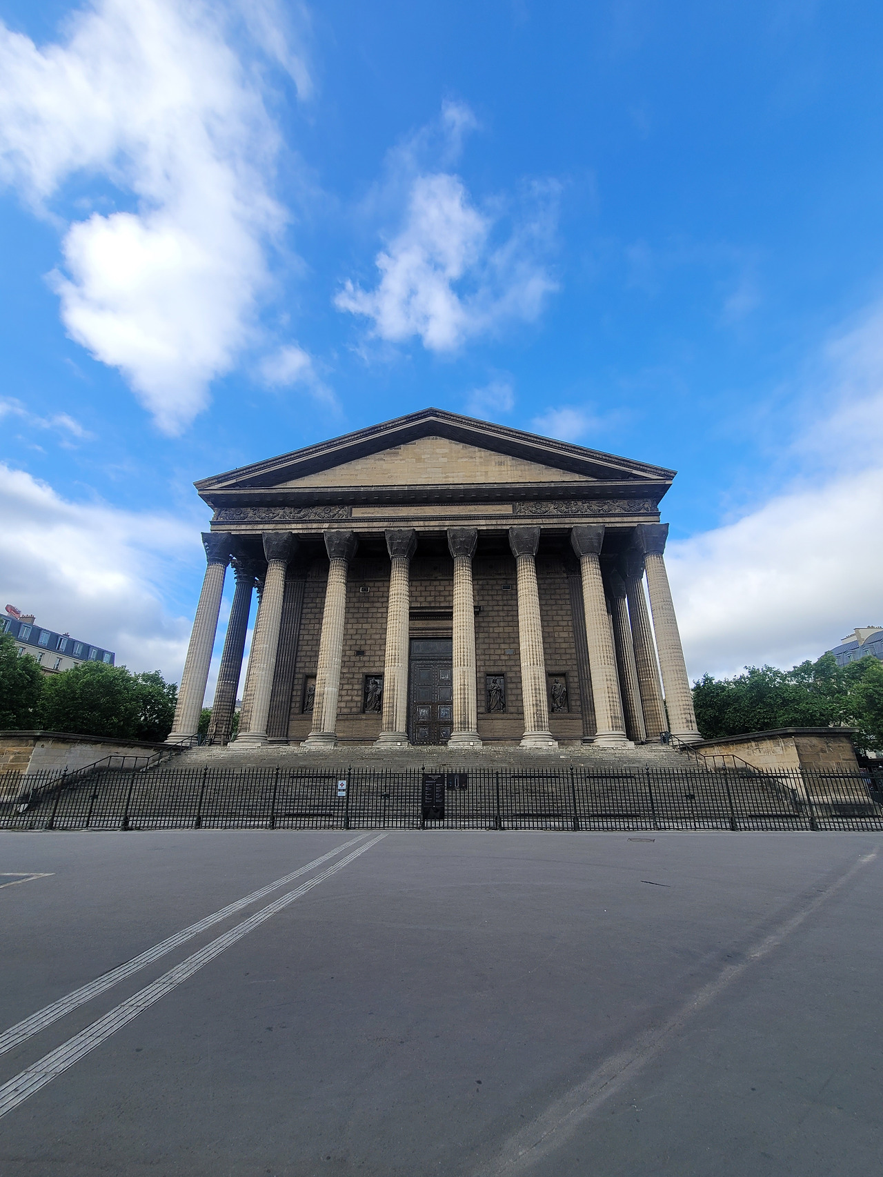 파리시내 한가운데, 멀리서 보면 그리스 파르테논 신전 같은 건물을 보았는데, 나는 성당임을 직감했다. 종탑이나 십자가가 보이지 않아서 더욱 성당 같은 성당 같았다. 가까이 가서 보니 성당 맞았다.