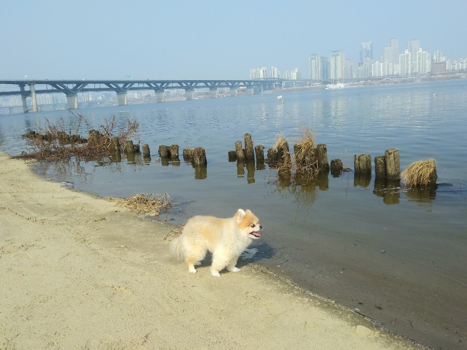 2월 14일 아침 식사하는데 개털이가 삥 뜯으러 오지도 않고 밥을 먹지도 않았다. 아내와 나는 우울하게 아침식사를 했다. 외출해 볼 일을 보고 있는데 아내가 카톡을 보내왔다. 개털과 한강변 산책을 한 사진과 함께 “ 와서 밥 한입 드셨네”하고 전했다. 마음이 조금 놓였다.