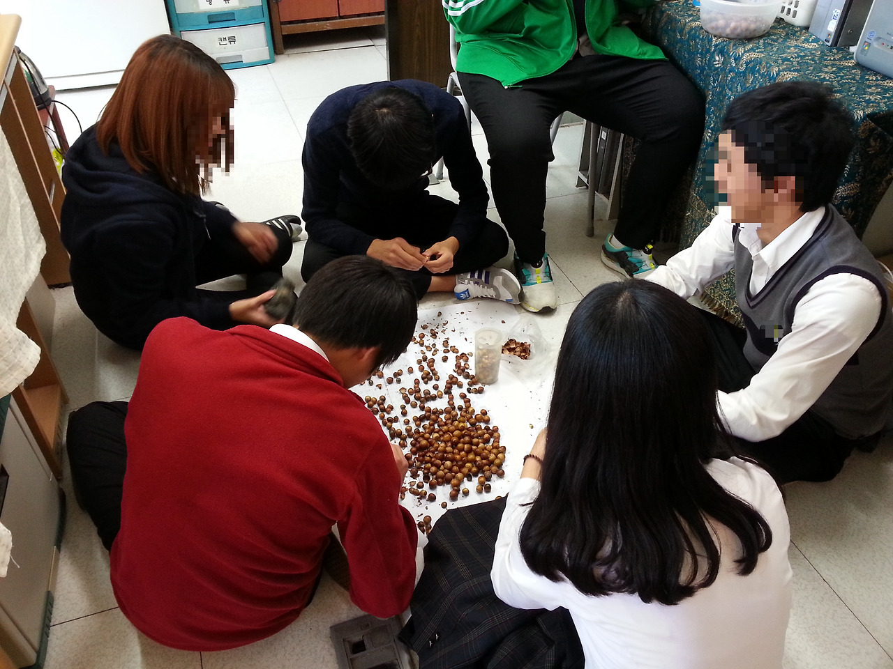그 후로 점심시간마다 아이들은 교무실에 모여 도토리를 까기 시작했다.