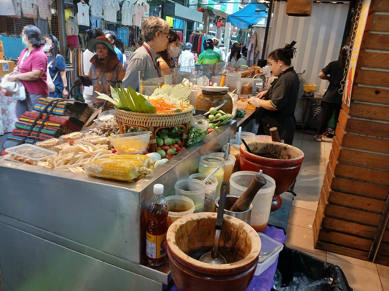 시장 골목을 걷다 보니, 통로 쪽으로 식재료를 펼쳐 놓고 바로 조리까지 하고 있는 식당이 눈에 들어왔다.