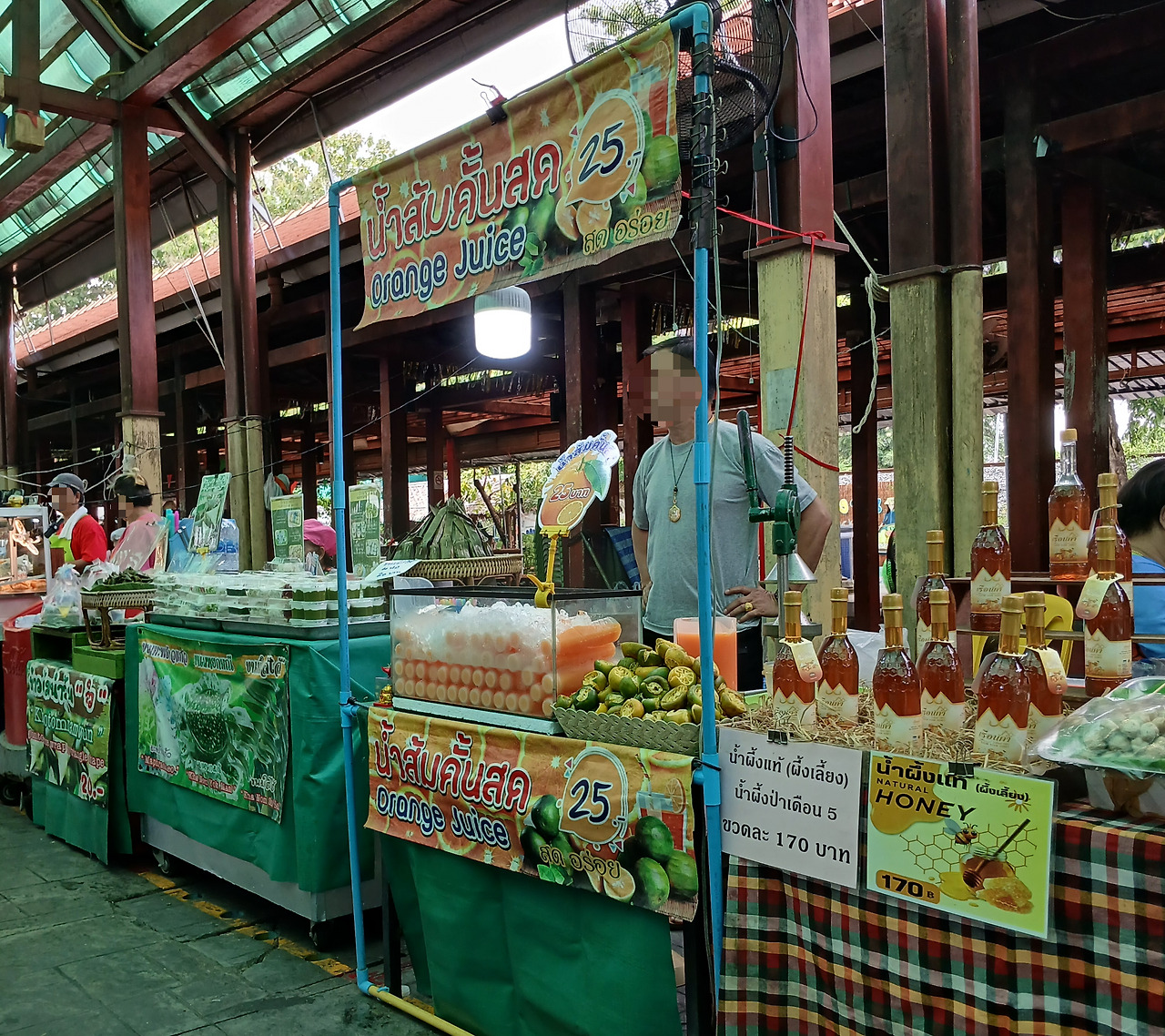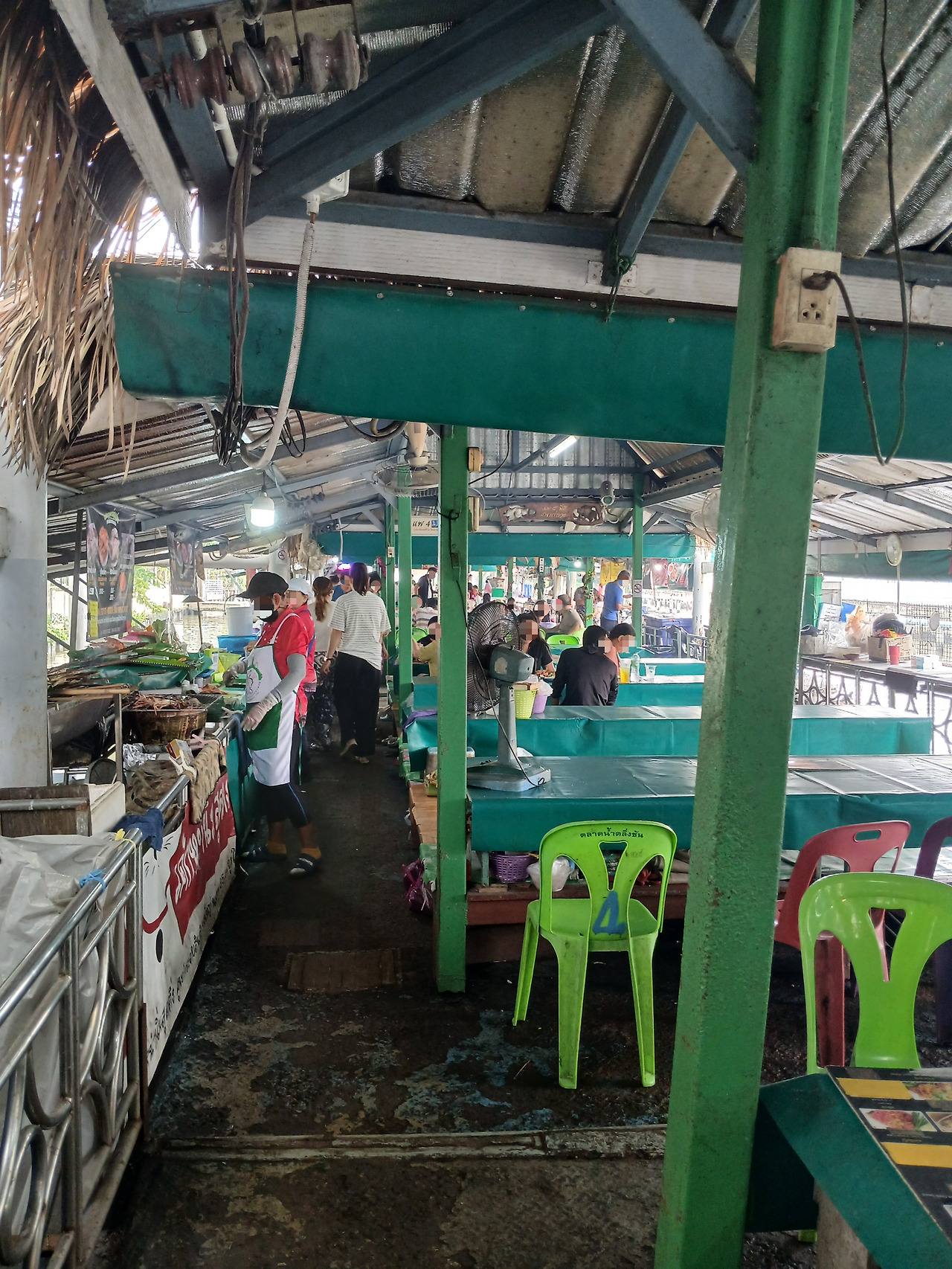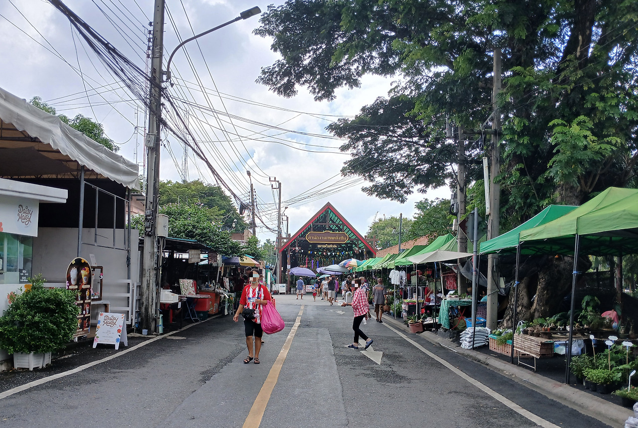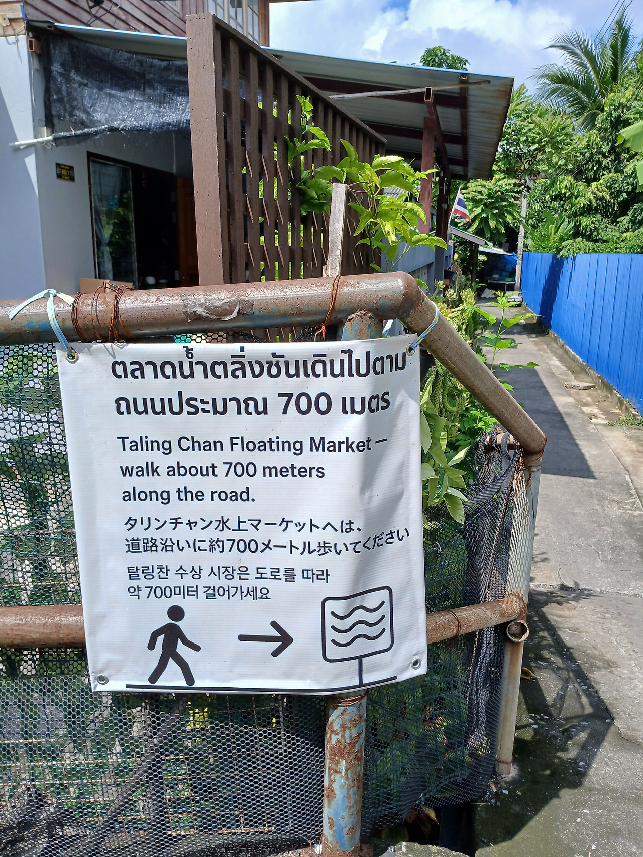 시장이 도로 바로 옆에 위치해 있었으면 눈에 잘 띄었겠지만, 딸링찬 사원(Wat Taling Chan)의 안쪽으로 위치해 있어 찾아 들어가면서도 '내가 맞게 찾아온 건가?' 하는 의구심이 들었지만, 나무에 새겨진 시장 이름을 보는 순간 안도할 수 있었다.