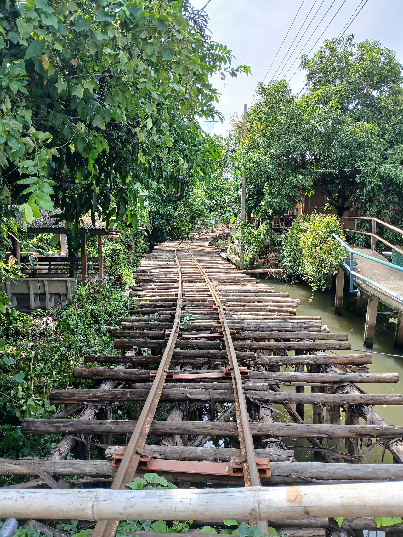 나무 위에 레일이 위태롭게 올려져 있었고, 흙바닥이 아닌 강물 위에 아슬아슬하게 걸쳐져 있었다.