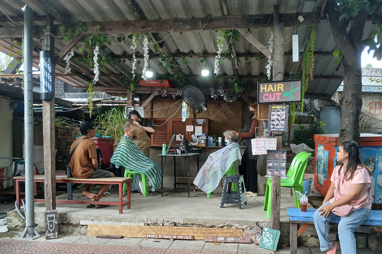 또 다른 한쪽에서는 실외 이발소에서 머리를 자르거나 기다리는 사람들이 있었는데, 만약 미용실이었다면 나도 머리를 단정히 다듬고 싶었을 것 같다.