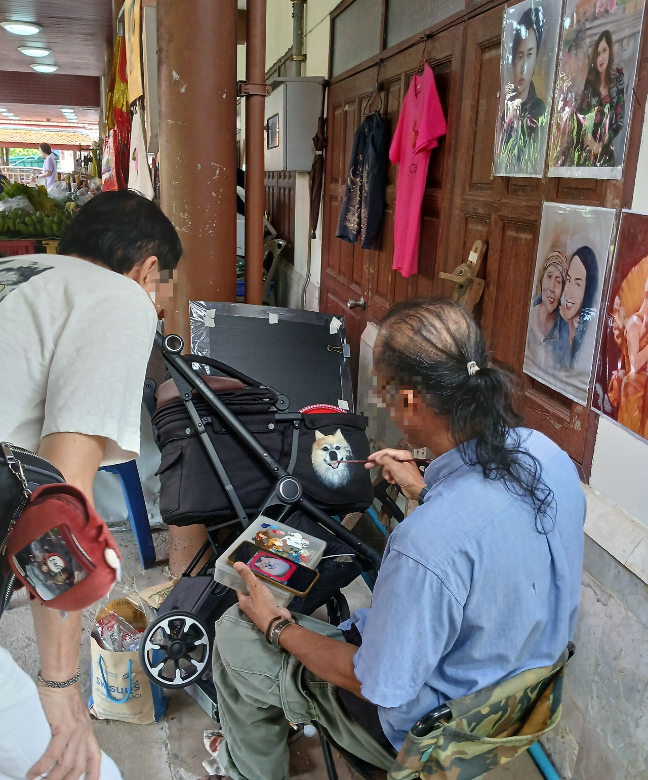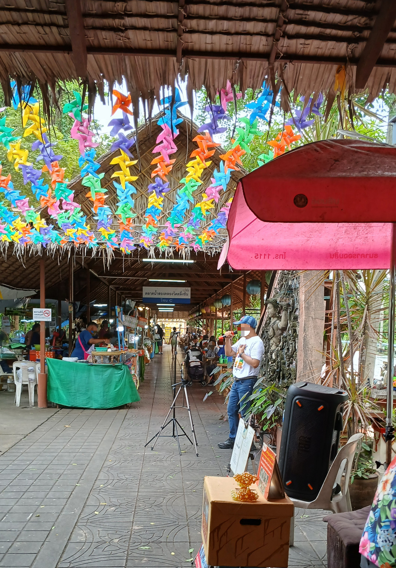 썽크렁 시장은 좀 전에 다녀온 딸링찬보다는 규모가 작고 시장을 찾은 사람들도 적었지만, 한쪽에서는 가수가 노래를 부르고, 다른 한쪽에서는 화가가 그림을 그리고, 곳곳에 바람개비가 장식되어 있어 아기자기한 느낌이 들었다.