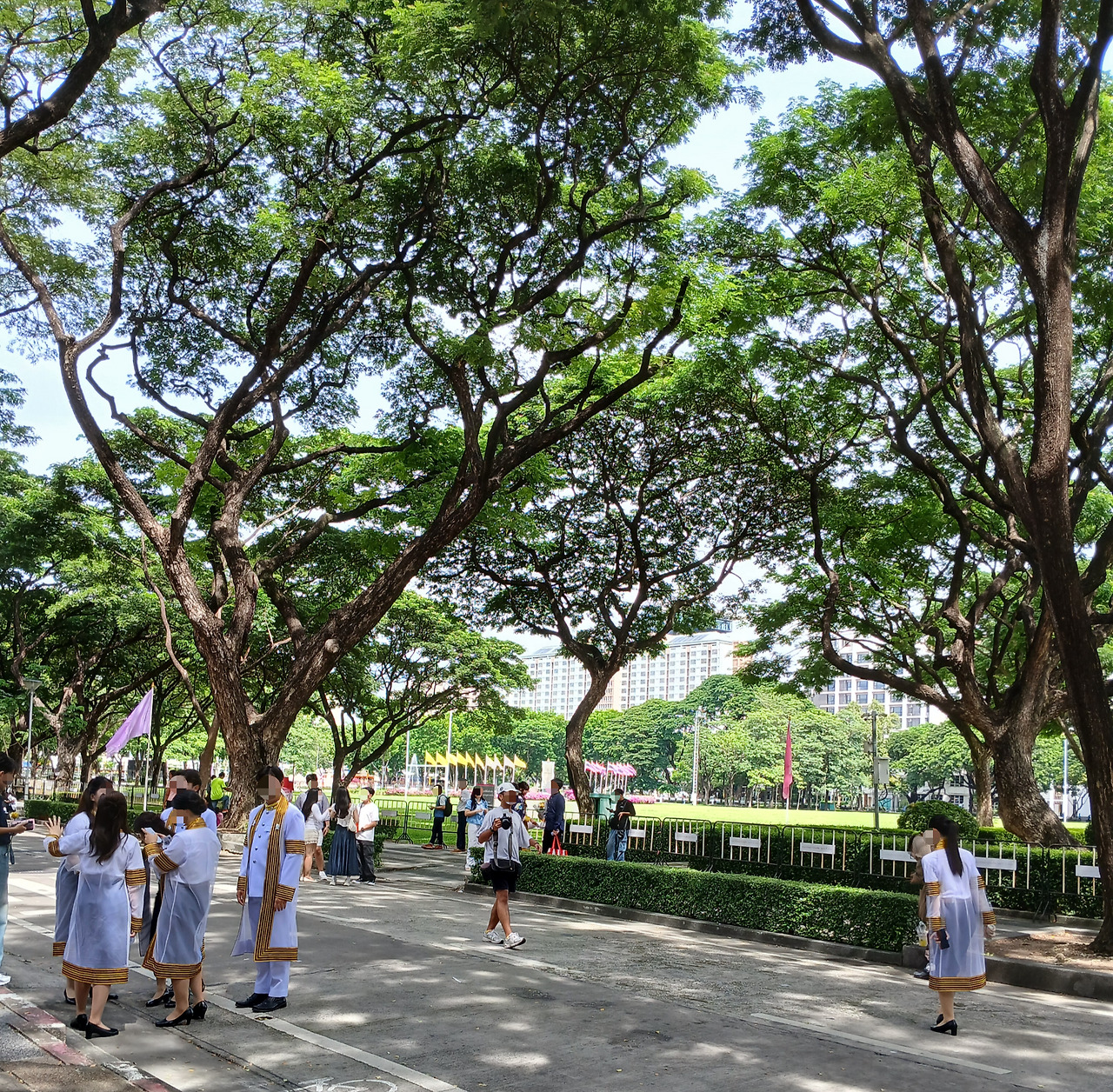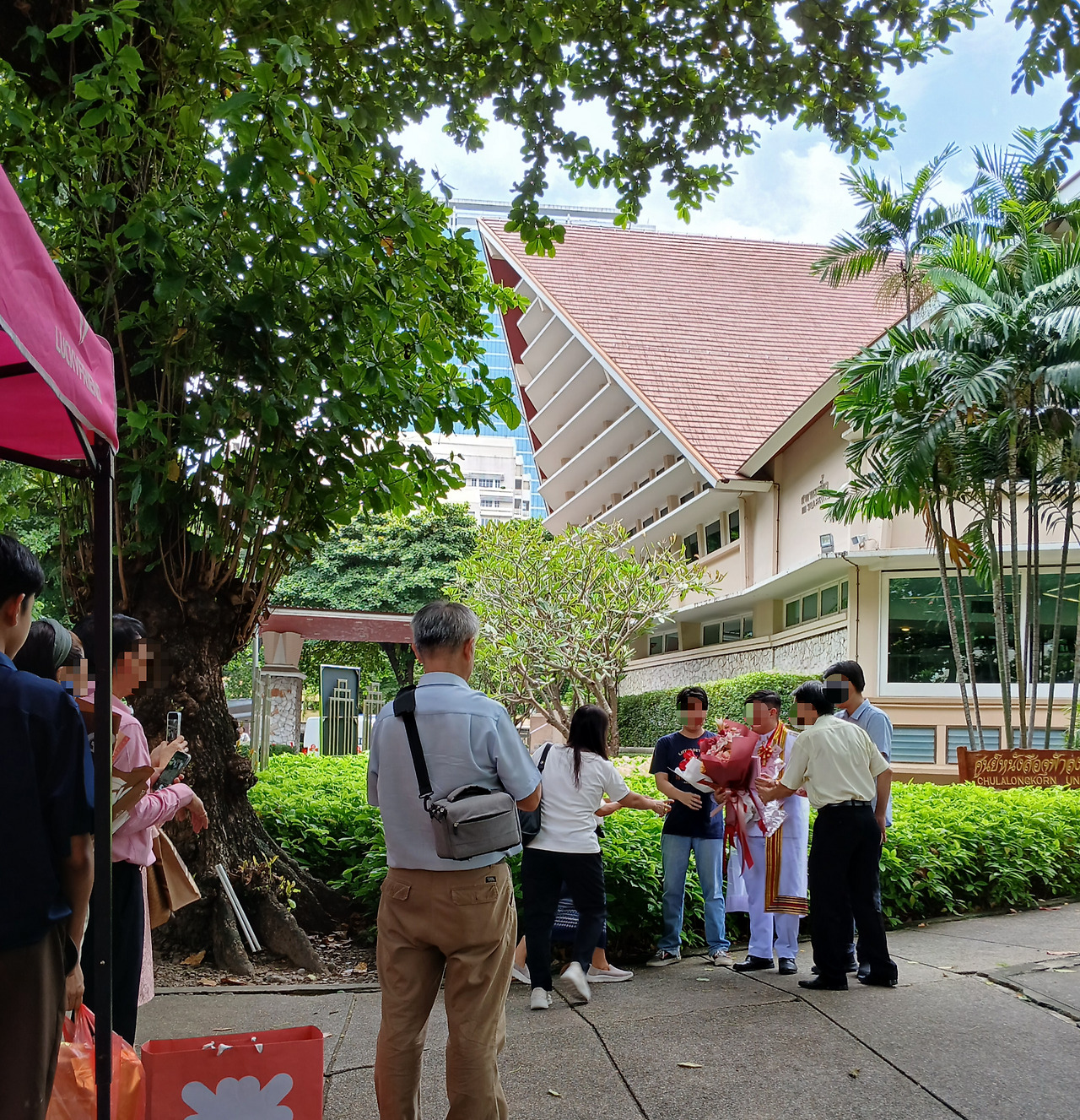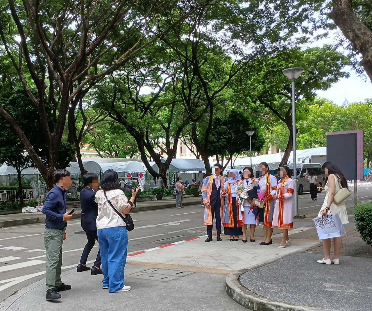 교내는 흰색 졸업 가운을 입고 졸업을 만끽하는 학생들과 그들을 축하하는 사람들로 가득했다.