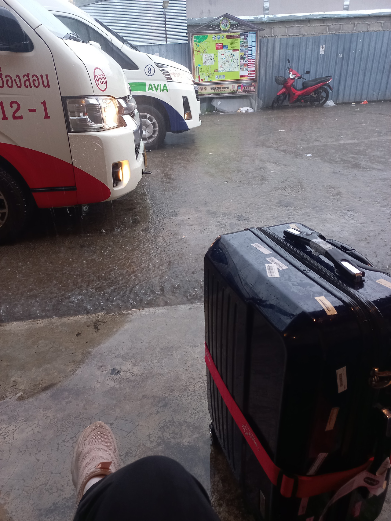 빠이 터미널에 도착했지만, 비는 그칠 기미가 보이지 않았다.