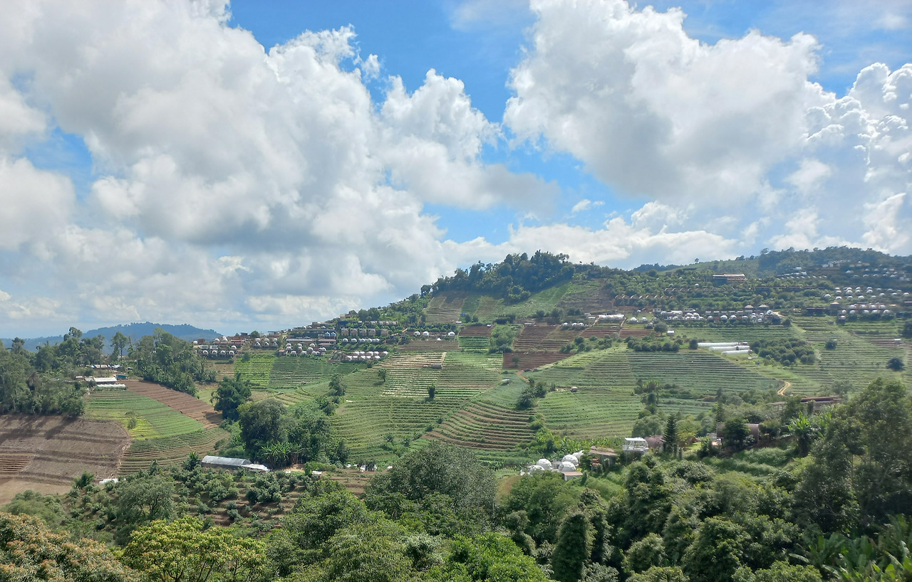 멀리 산 언덕을 따라 줄지어 선 텐트형 숙소들이 눈에 들어왔다.