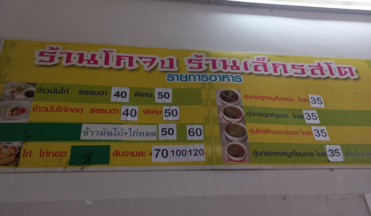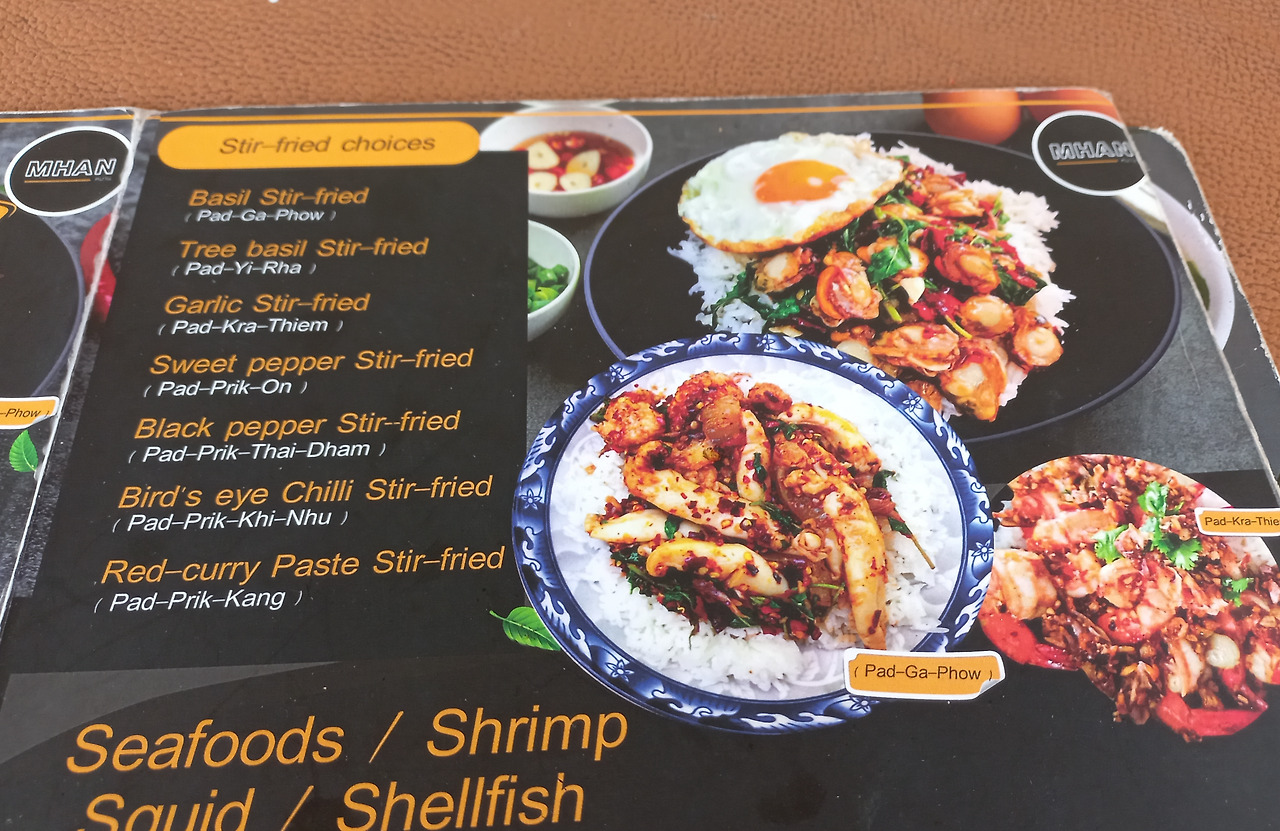 벽에 적힌 태국어 메뉴는 알 수 없었지만, 메뉴 옆에 붙은 사진 덕분에 손가락으로 가리켜 무난히 음식을 주문할 수 있었다.