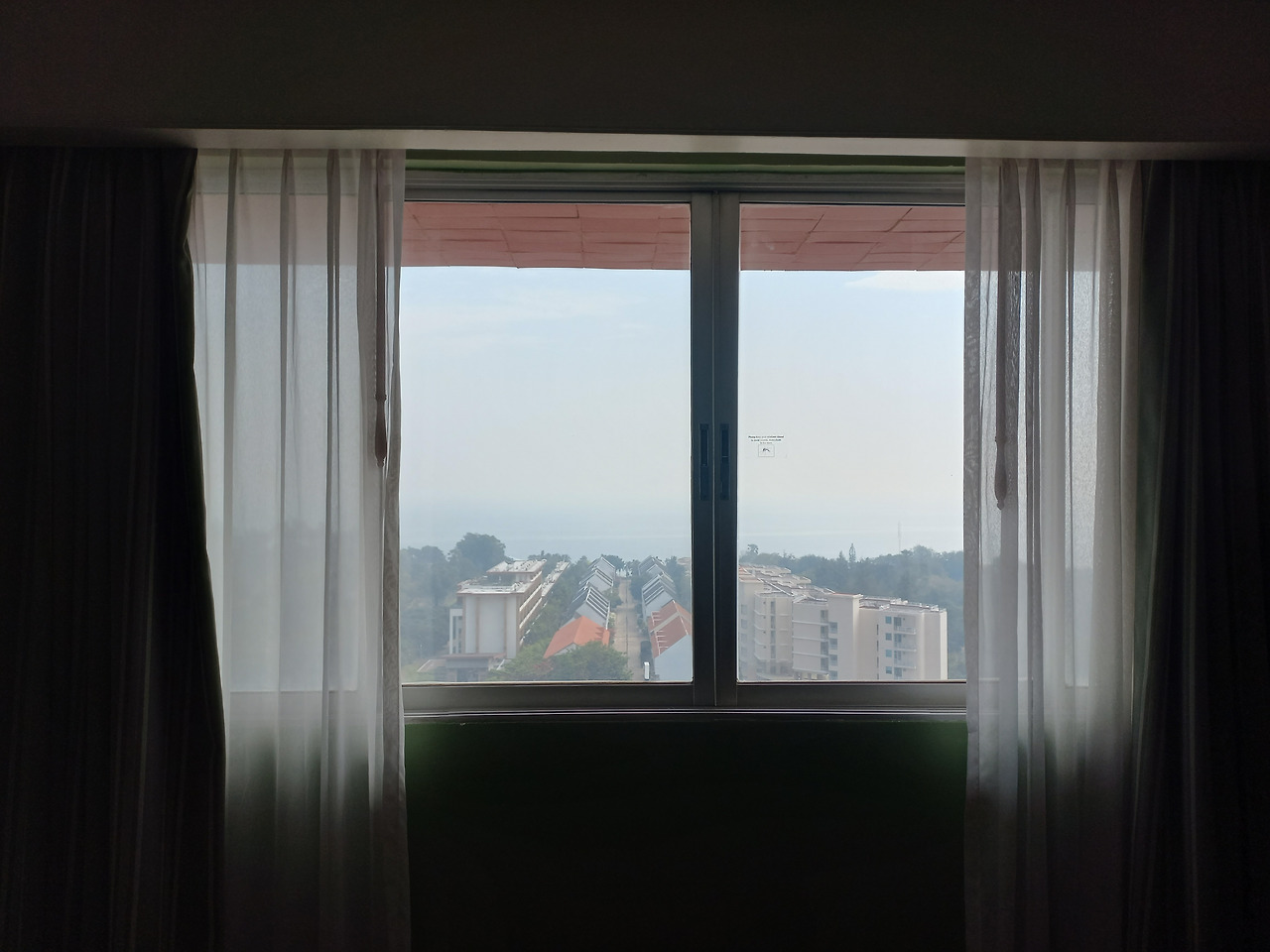 아침, 호텔 창문 밖의 풍경은 생각보다 맑지 않았다.