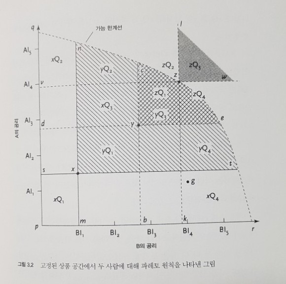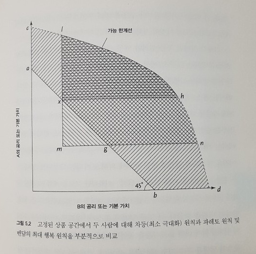 3. 공리 측정의 어려움은 물론 사람들 사이의 도덕적 경계선에 무감각한 고전 공리주의를 뒤로하고, 경제학자 파레토는 신박한 이론을 내세운다. 그는 합리성의 최소 조건인 선호도에 관한 이행성(A보다 B를 좋아하고 B보다 C를 좋아하면, A보다 C를 좋아한다), 공리 극대화 원칙, 그리고 무차별 곡선만으로 사람들의 선택에 관한 모델을 만들어냈다. 자유 시장에서 사람들은 더 높은 공리를 찾아 '파레토-우월'한 변화를 지향하며, 이는 '파레토-최적점'에 도달할 때까지 계속된다. 반면 (두 명의 거래를 가정했을 때) 하나가 손해를 보는 '파레토-결정불가능'한 변화는 일어나지 않는다. 재분배가 이러한 움직임에 해당된다. 하지만 파레토는 재분배에 대해 규범적 주장을 제시하지는 않았다. 파레토의 모델을 고전 공리주의와 결합시키면 재미있는 그림이 탄생한다. 가령 파레토-우월한 것은 벤담-우월하지만, 그 역은 성립하지 않는다. 벤담-우월의 경우 누군가 손해를 보아도 전체 공리의 합만 유지되거나 상승하면 그만이기 때문이다. 결과적으로 분배에 있어 벤담의 '객관적' 원칙은 너무 강하고, 파레토의 '주관적' 원칙은 너무 약하다. 이번엔 자유에 관해 이야기해보자. 또다른 공리주의자인 존 스튜어트 밀은 <자유론>에서 다른 사람에게 피해를 주는 한에서만 국가가 간섭할 수 있다는 '위해 원칙'을 제시한다. 그에게 자유는 최고의 가치다. 따라서 남들에게 위해를 끼칠 경우에 정부가 공리주의의 원칙을 꺼내드는 것이다. 위해에 대한 밀의 해석은 결과주의적이기도 하고 의도주의적이기도 하다. 전자는 정부의 개입으로부터 개인을 보호할 수 있을지 불분명하다. 후자는 자유지상주의적 입장으로 귀결되며 착취에 대해 무력하다는 단점이 있다.