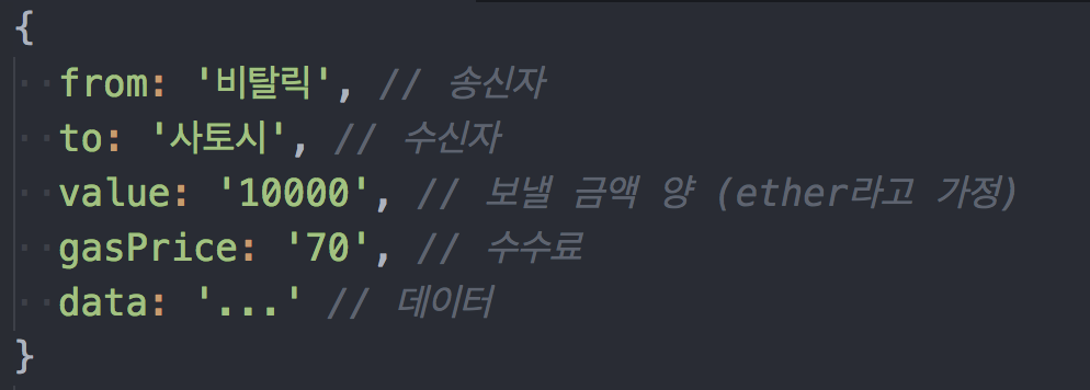 이더리움에서의 트랜잭션은 송신자, 수신자, 보낼 양, 수수료, 데이터 등등의 정보를 기입해넣게 되어있는데요.